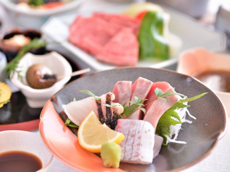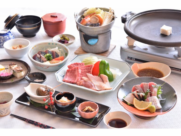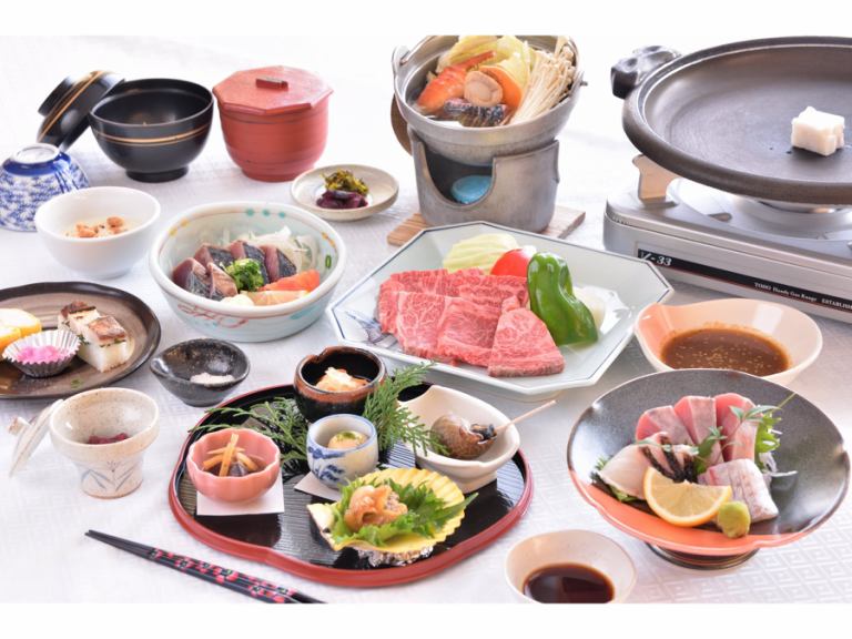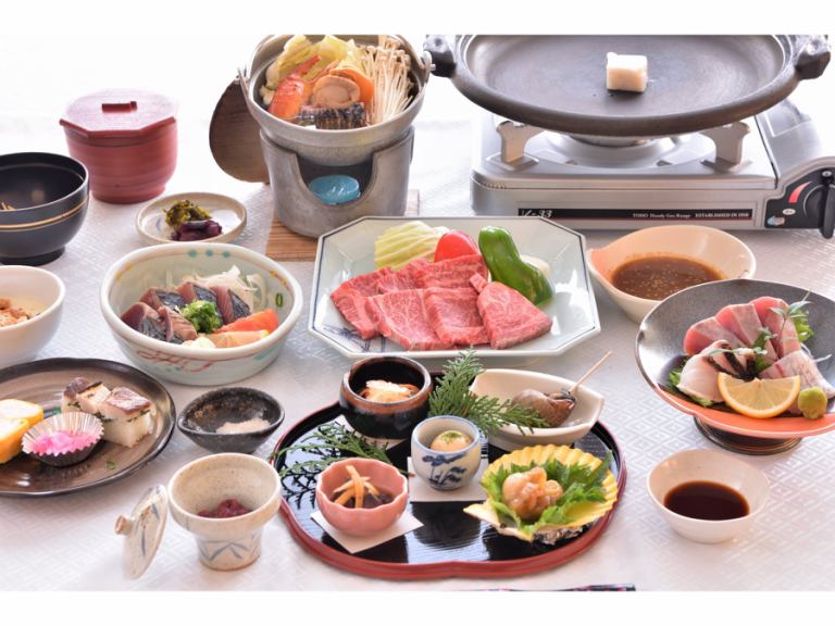 ◇◆品嚐並比較土佐牌肉!◆◇ 土佐牛Hachikin當地雞鐵板燒懷石套餐配烤鰹魚(一例)