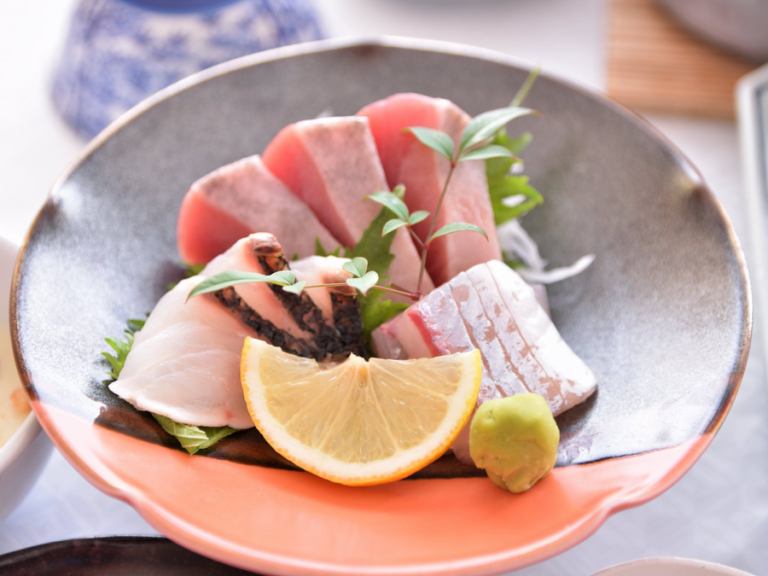 刺身範例:我們使用在黑潮中捕捉的新鮮時令魚類…